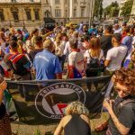 Protestatarii au purtat pancarte cu mesajele: „Rasismul, o boală europeană tratată superficial”, „Solidaritate antirasistă”, „Europe, stop rasism in your states”, „În an centenar rasismul este barbar”.