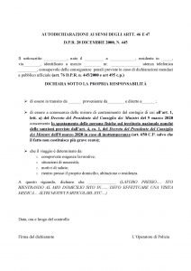 autodichiarazione_post_DPCM_9_marzo_2020 by Redactia GR 10/03/2020, 12:08 See more Articolul anterior Carantina Italia, noile formulare: «Declar pe propria răspundere că circul din următoarele motive…» Ce poți face și ce nu până în 3 aprilie